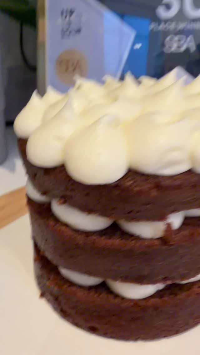 Stacked like a tiny edible penthouse, each scarlet layer is lavishly smothered in cream cheese frosting so silky it should probably have its own theme music. Scientists are calling it “structurally adorable yet emotionally overwhelming.”