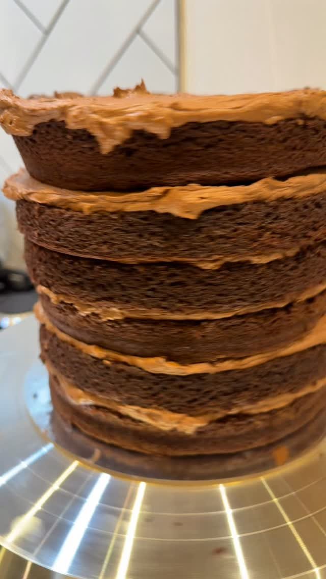 A six-layer chocolate fudge cake so unreasonably indulgent it should come with a warning label and a fainting couch.