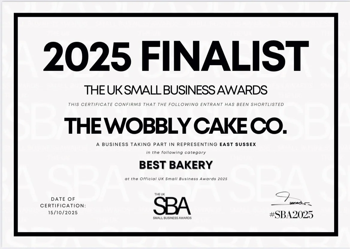 The Wobbly Cake Co. - Bexhill-based small business β is proud to announce that it has been shortlisted in the UK Small Business Awards in the βBest Bakeryβ and βBest Home-based Businessβ categories.